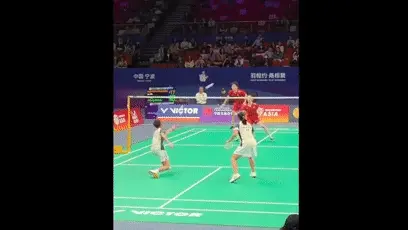 此前程星被罰了一張黃牌,當比賽來到第三局18-17關鍵分,程星後場反手回球下網,他十分懊惱自己的失誤,蹲在地上,砸了一下羽毛球拍。