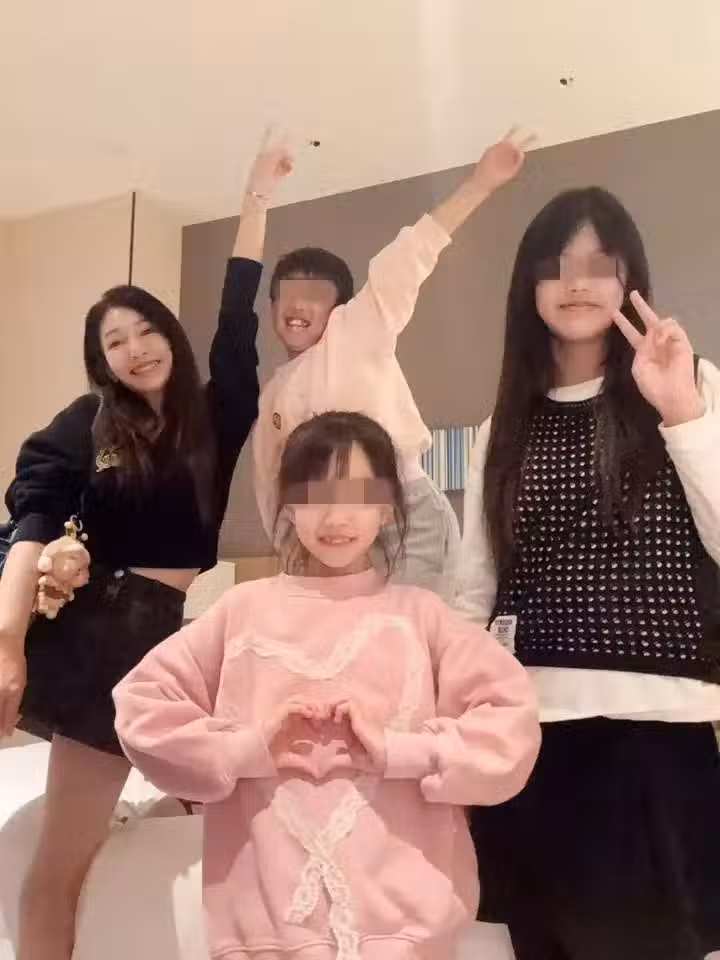 最後,她也上傳了全家人抵達飯店的開心合照。