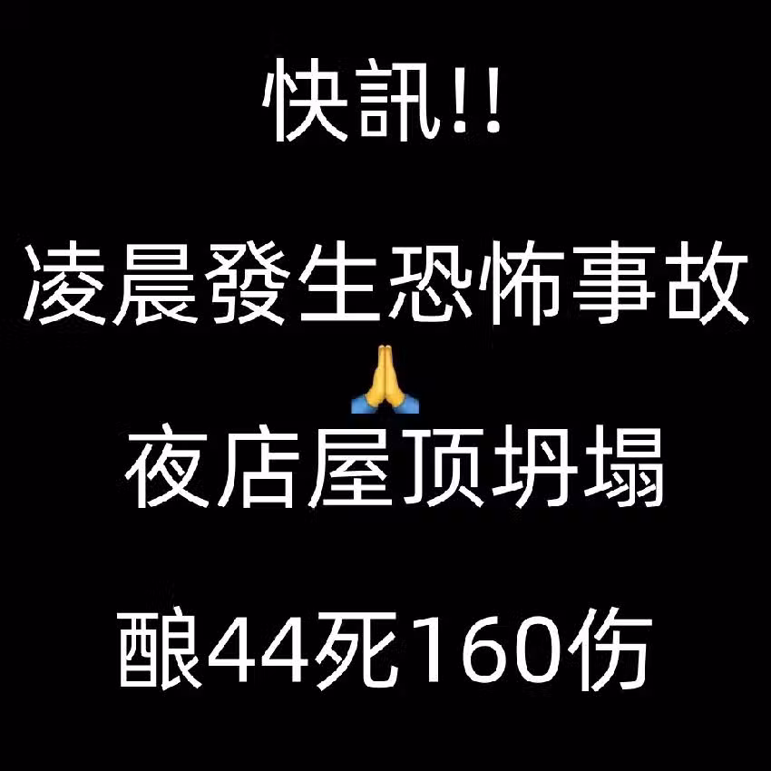 快訊/凌晨發生恐怖事故 夜店屋頂坍塌 釀44死160傷