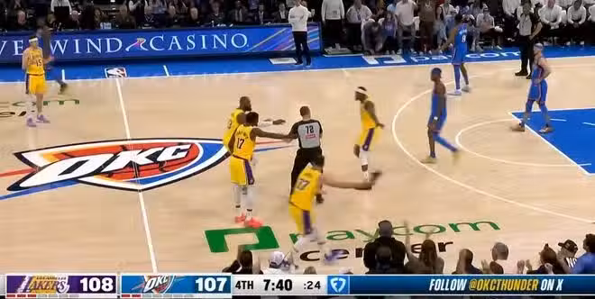 驅逐了一個東契奇,湖人場上這麼多人,尤其是詹姆斯的反應這麼大,你就知道這個回合有多無語。所以說詹皇現在本來就憋著一口氣,雷霆賽後還說驅逐得好,罰得好,那對不起了,這個事兒詹姆斯一定會記在心裡,雙方徹底結仇結下樑子了。