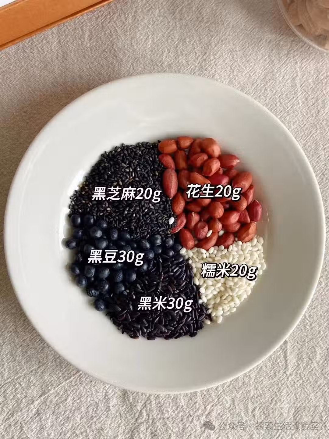 🌟食材:黑豆30g+花生20g+黑芝麻20g+黑米30g+糯米20g+水800ml