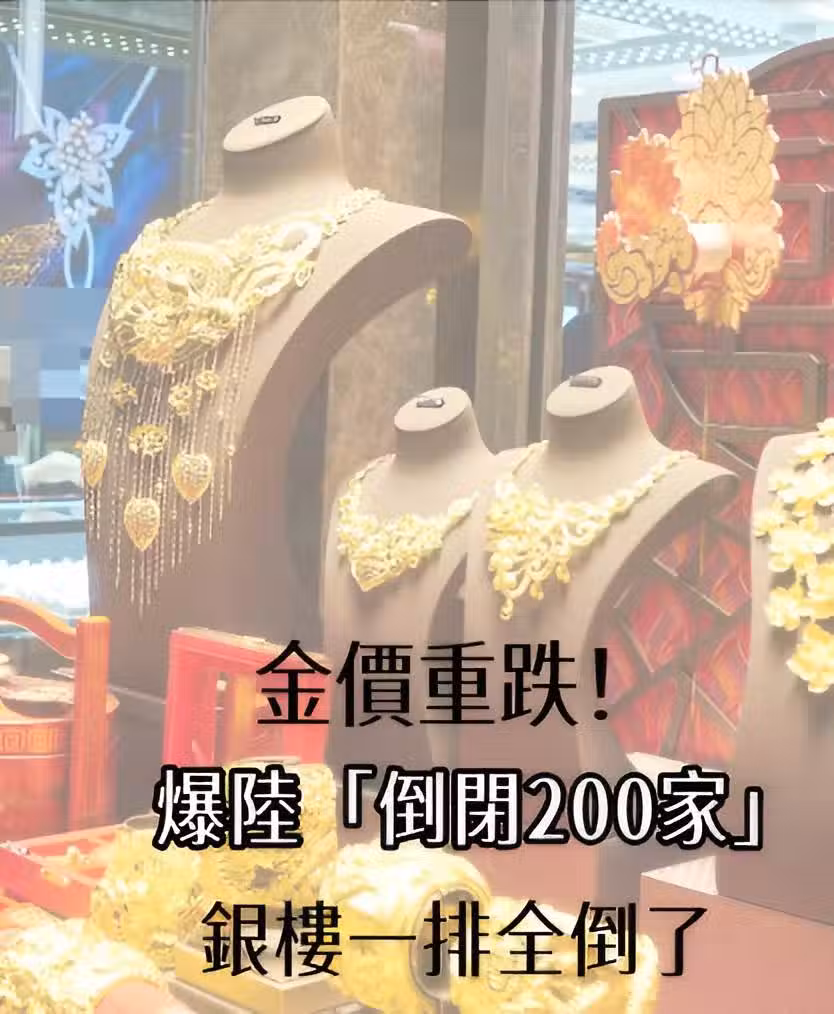 最新/金價重跌!爆陸「倒閉200家」,銀樓一排全倒了!