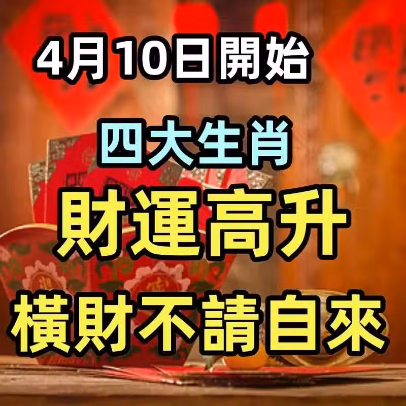 4月10日開始,四大生肖財運高升,橫財不請自來.