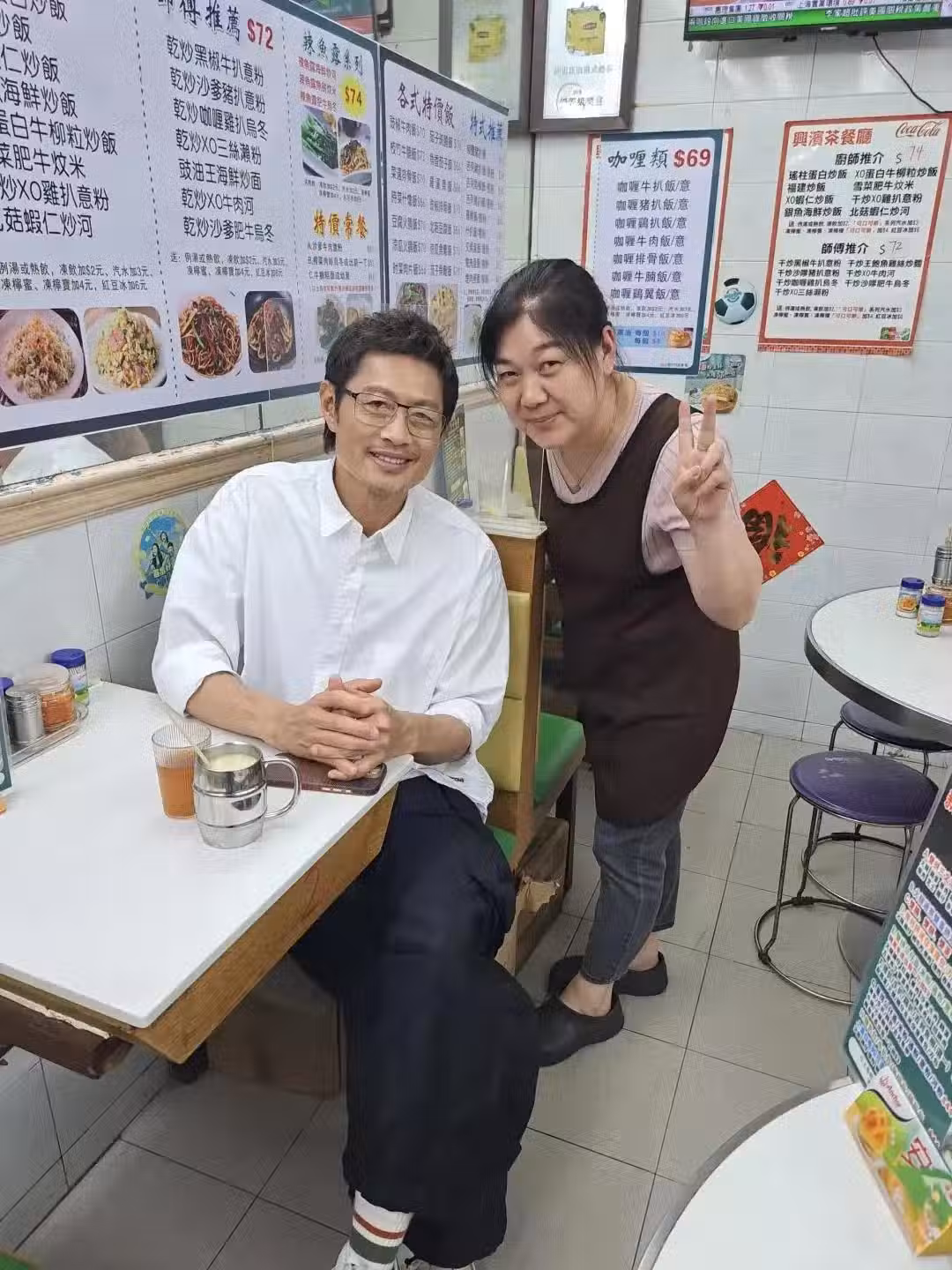 4月8日晚上,黃德斌到香港灣仔一家茶餐廳吃飯,被老闆認出來了!