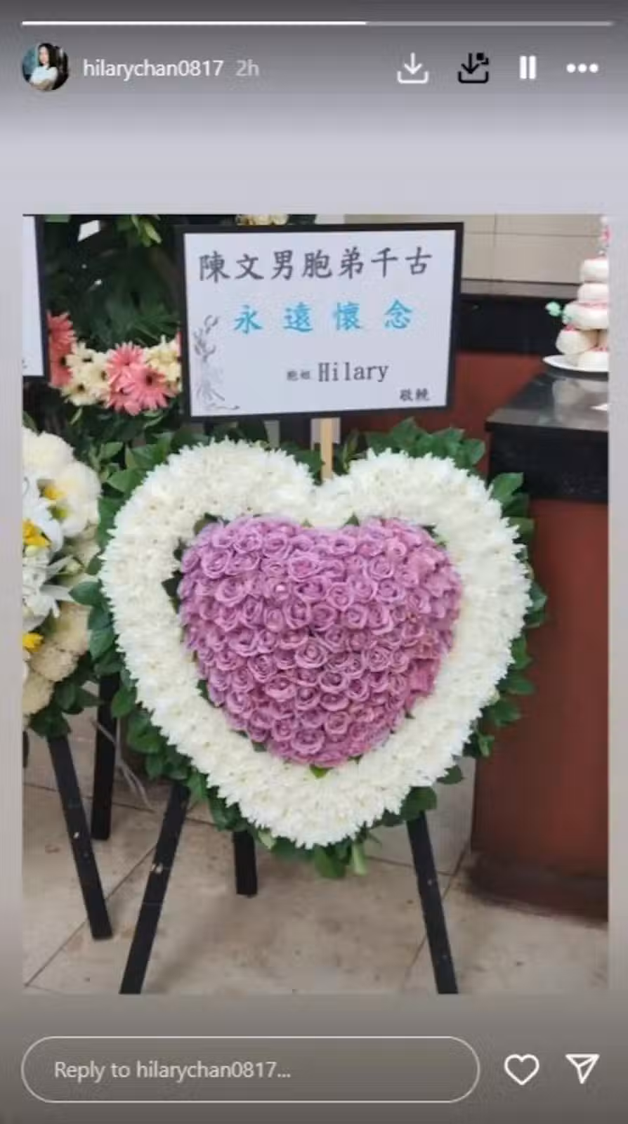 Hilary之後又發布一張2隻手緊握的黑白照,疑似是她與弟弟最後一次見面、對話。她更在照片旁寫下文字,「姐姐愛你」。她在該篇動態中透露,曾在病榻前問弟弟,「還有什麼想跟我說?」,只見文頌男搖頭不語,只是輕輕貼出愛心手勢的小貼圖。即便沒有對話,但仍看得出手足生死離別前的痛苦,以及姐弟倆深厚的感情。