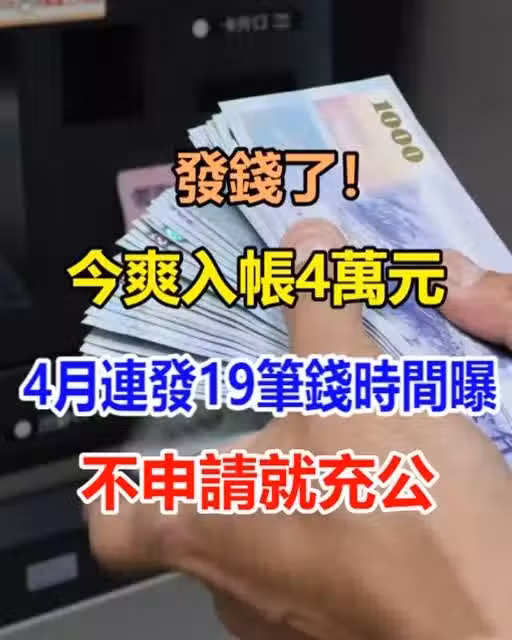 發錢了!今爽入帳「4萬元」 4月底前連發「19筆」時間一次看,不申請就充公!