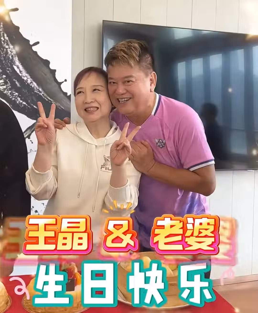 75歲陳百祥在香港,為老婆慶祝生日,大方秀恩愛,親吻黃杏秀臉頰