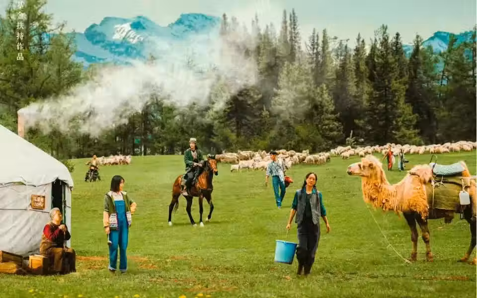 於適演的哈薩克少年騎馬放羊的鏡頭,把新疆的草原拍得跟Windows桌面似的。最絕的是拍轉場,前一秒還在吵架,後鏡頭直接切到漫山遍野的蒲公英,觀眾的氣都沒處生。有網友說看完這劇,連夜下單了阿勒泰的旅遊套餐。