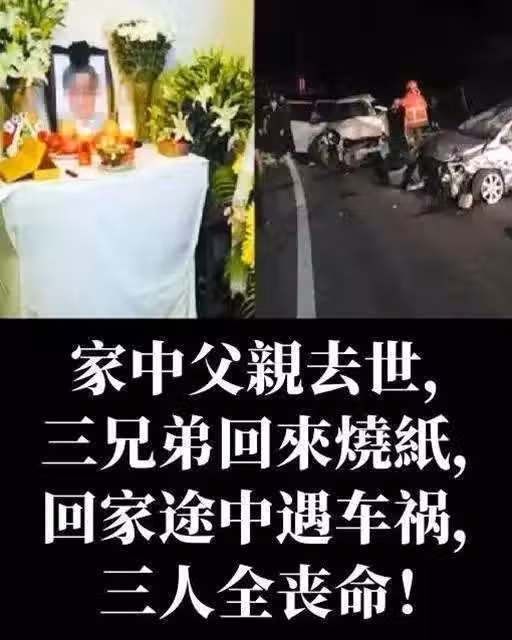 家中父親去世, 三兄弟回來燒紙,回家途中遇交通事故,三人全喪命!