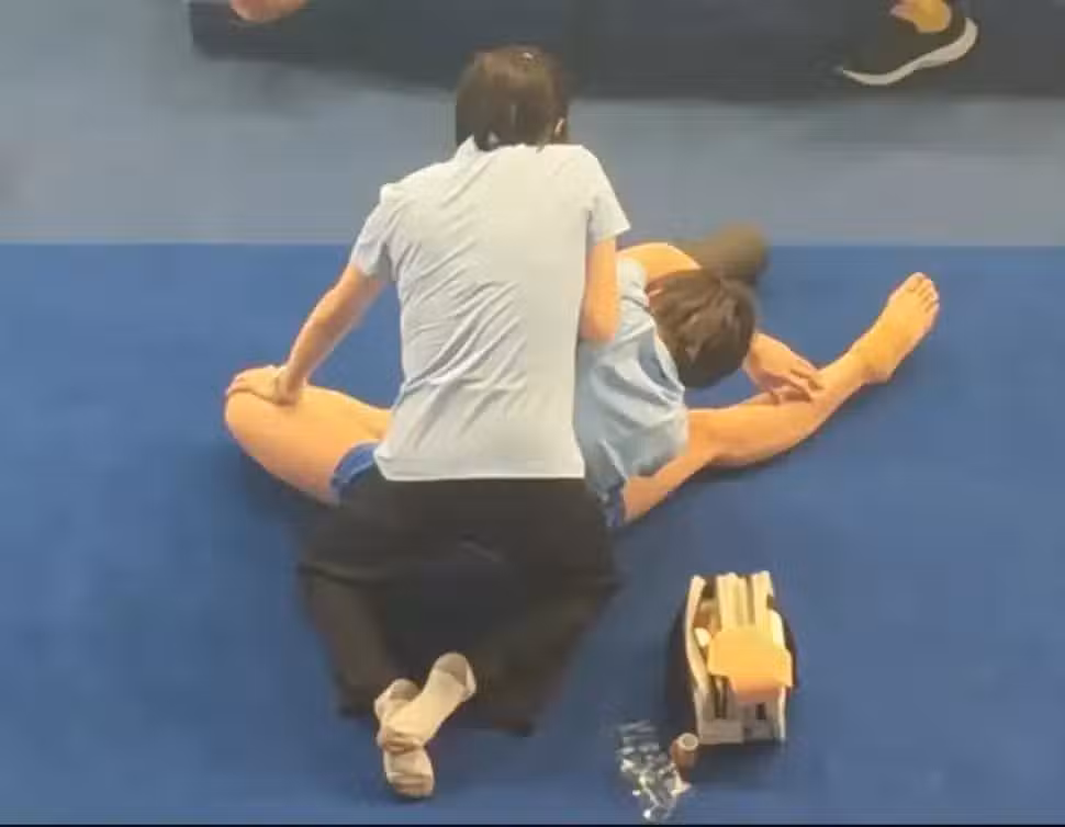 陳若琳本來就有腰傷,這些拉伸動作還是需要花挺多力氣的,看得出平時師徒兩人就是這麼操作的。
