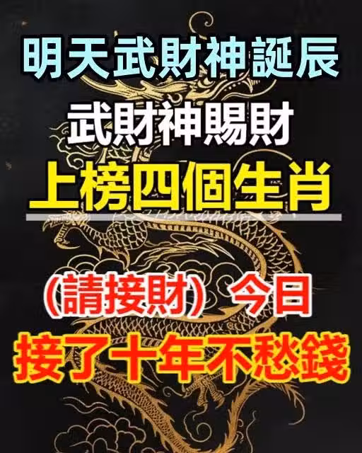明天武財神誕辰, 武財神賜財!上榜四個生肖(請接財)今日接了十年不愁錢