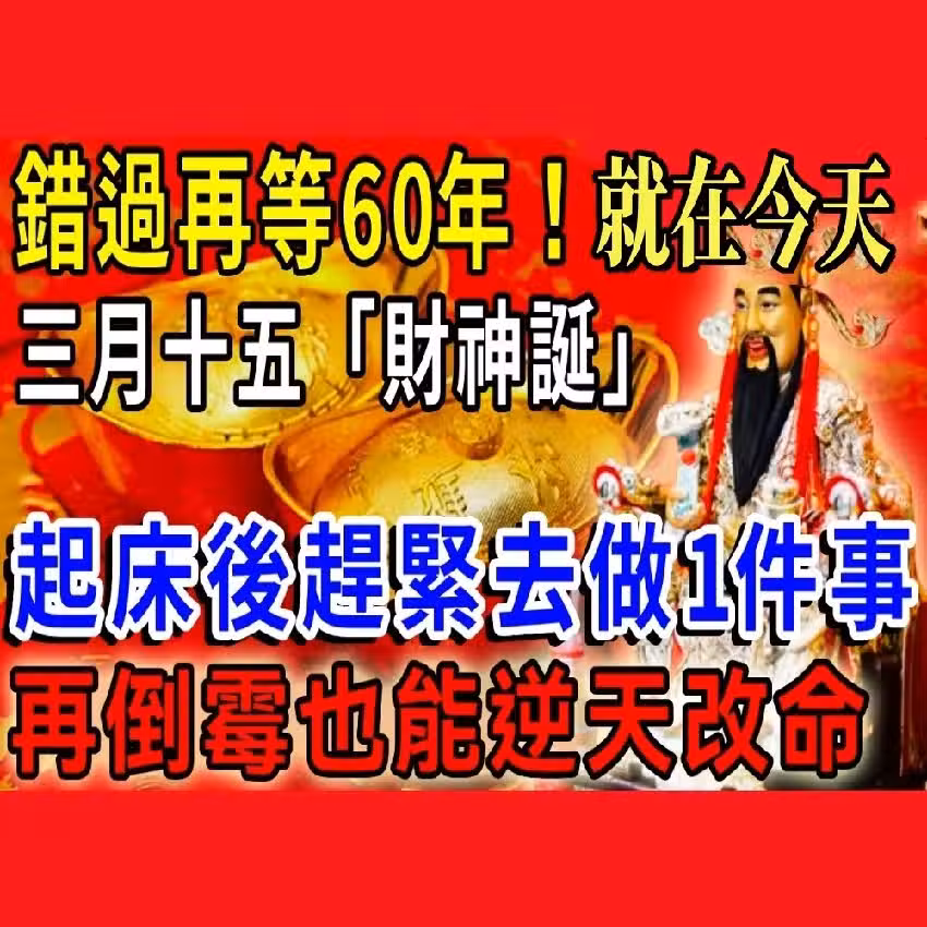 60年一遇!今天武財神誕辰,起床後趕緊「去做1件事」福報不請自來,再倒霉也能逆天改命