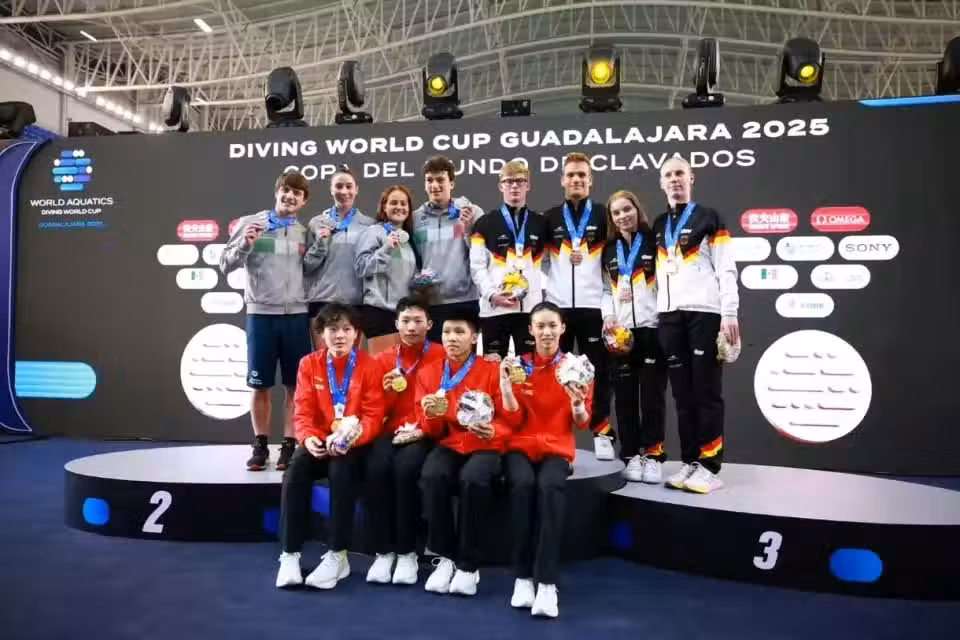這是跳水世界盃今年的第二站賽事。第一站在墨西哥瓜達拉哈拉舉行,混團比賽中,陳芋汐被三名隊友抬著出場,非常搞笑,而四名隊員也齊心協力,幫助中國隊順利奪金。