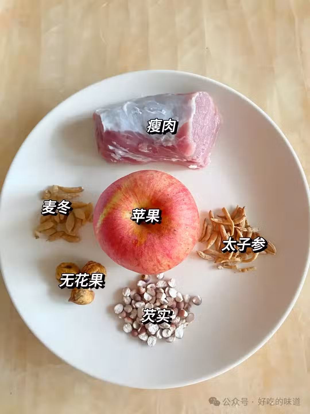 1、蘋果用鹽搓洗乾淨,藥材提前浸泡15分鐘;