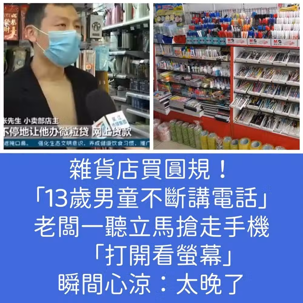 雜貨店買圓規!「13歲男童不斷講電話」老闆一聽立馬搶走手機 「打開看螢幕」瞬間心涼:太晚了...