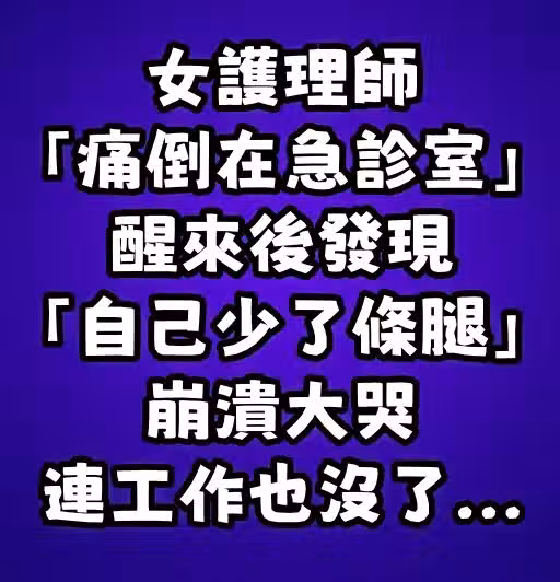 女護理師「痛倒在急診室」醒來後發現「自己少了條腿」崩潰大哭:連工作也丟了...