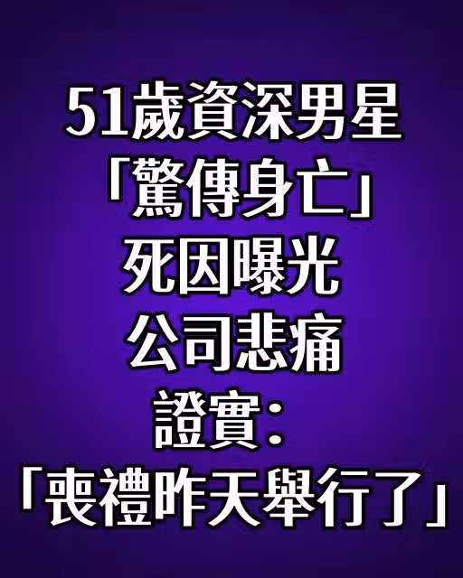 51歲資深男星「驚傳身亡」死因曝光 公司悲痛證實:「喪禮昨天舉行了」