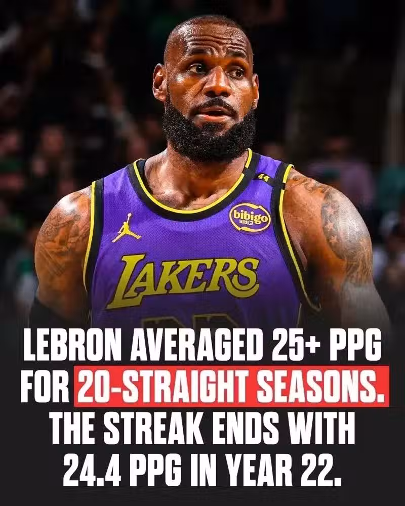 上一場比賽大勝火箭,詹姆斯意外受傷,僅得到14分,這也就意味著他在收官之戰至少要拿到65分才能夠延續場均25+的數據,如今隨著確認收官之戰不打,記錄就將被終結,當然了,即便是收官之戰能打,65分這個數據對現在的詹姆斯來說,實在太難了。