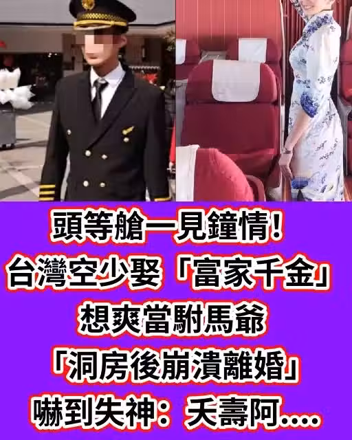 頭等艙一見鍾情!台灣空少「娶回富家千金」想爽當駙馬爺 「洞房後崩潰離婚」嚇到失神:夭壽阿~