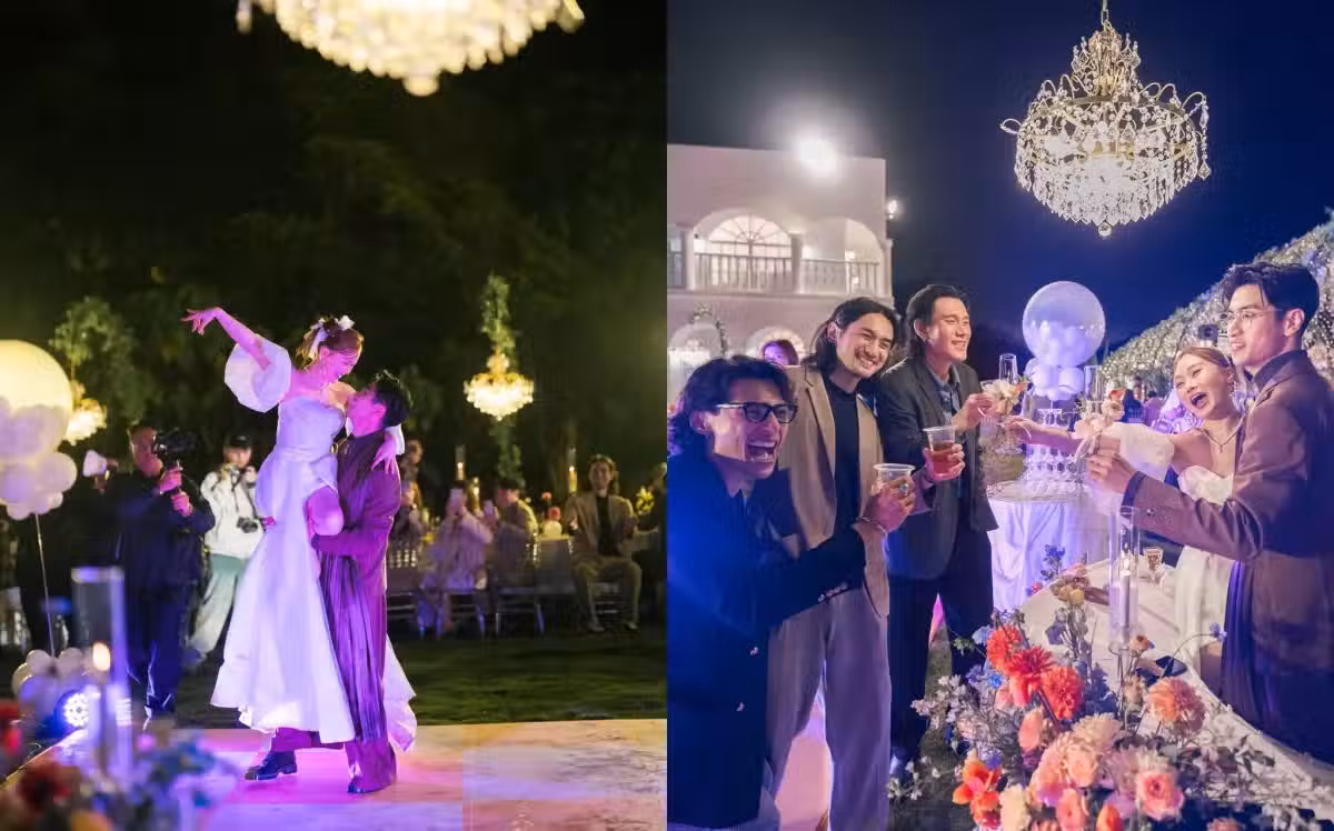 到了晚上,譚杏藍換上另一套婚紗,在開場先與Ronald跳舞,接著再有嘉賓輪流唱歌,她再與伴郎們齊齊跳勁舞,Ronald又吹薩克斯為太太陪奏,有賓客笑言:「這個婚禮好cracy,還好有意思,好好玩,全部都是年輕人,玩到2點,痴線。」甚至還有人說:「去過最痴線的婚禮,喝到2點,還有營多撈麵。」