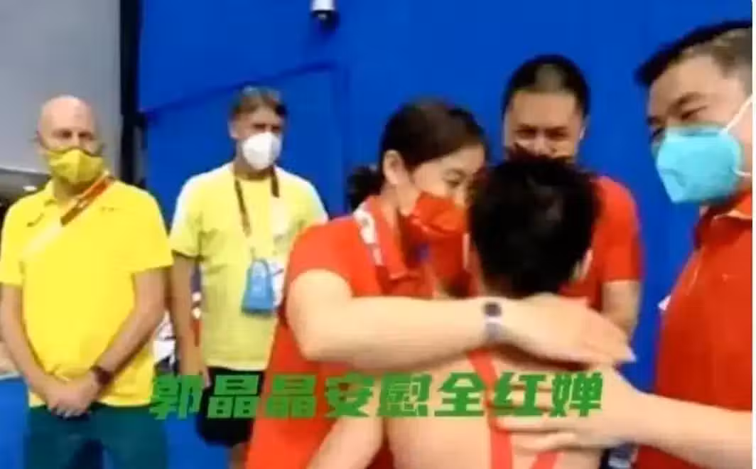那時候,郭晶晶正拿著手機想拍賽場上的精彩瞬間呢,全紅嬋一眼看見她,眼睛一下子就亮了,開心得不得了,直接就朝著郭晶晶跑過去了。