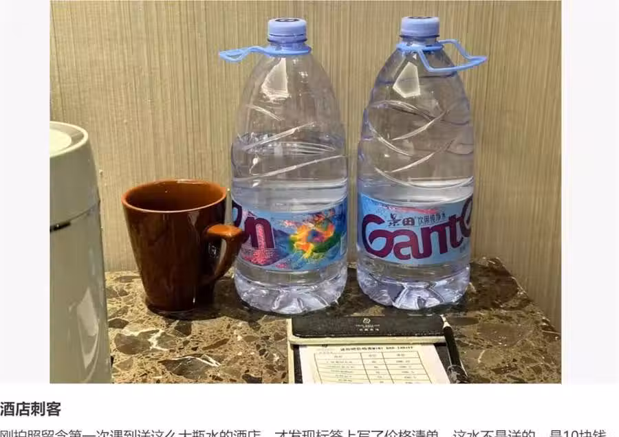 酒店房間裡的礦泉水還有另一大隱患,衛生問題。