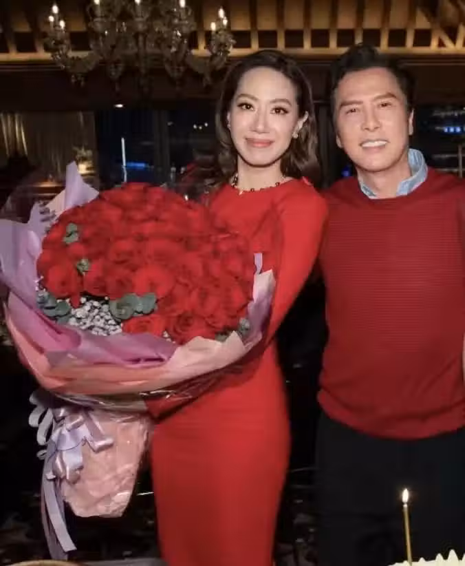 老婆過生日,甄子丹特意送上了一大束玫瑰花,真的好浪漫啊!