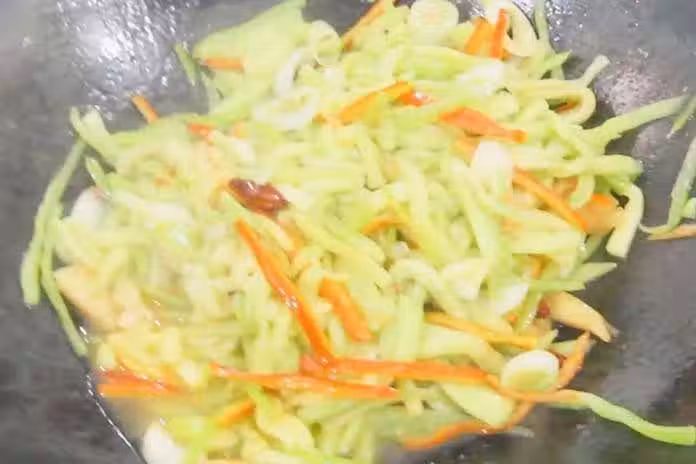 4.再勾入水澱粉,淋入芝麻油,翻勻後即可出鍋裝盤。