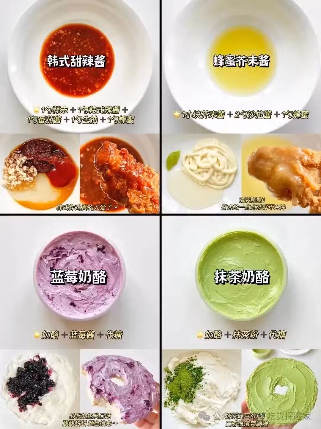 ✅百香果奶酪 準備需要用到的調料:奶酪,百香果,檸檬皮屑,白糖或者代糖。 ✅可可奶酪 準備需要用到的調料:奶酪,可可粉,堅果碎,白糖或者代糖。 ✅蒜香奶酪: 準備需要用到的調料:奶酪,熟蒜泥,蔥花,歐芹碎,黑胡椒碎,海鹽。 ✅奧利奧奶酪 準備需要用到的調料:奶酪,奧利奧餅乾碎,海鹽。