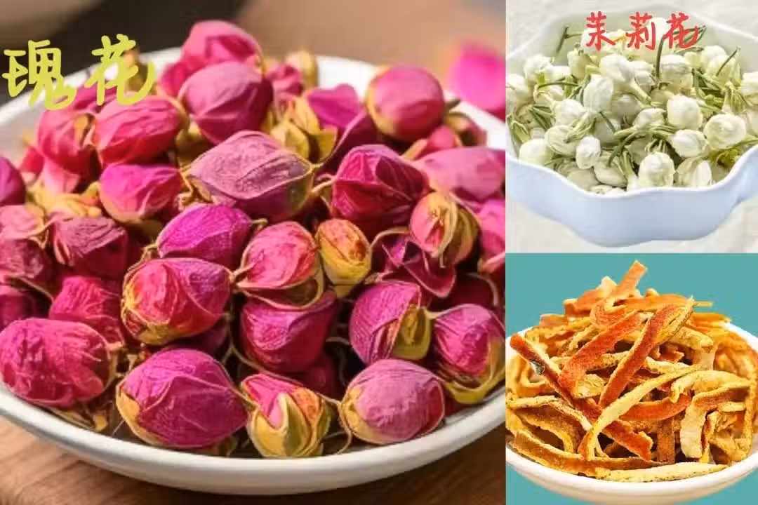 玫瑰花3朵,陳皮2g,茉莉花5朵