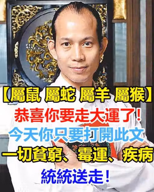 【屬鼠 屬蛇 屬羊 屬X】恭喜你要走大運了,一切貧窮、霉運、疾病統統送走~