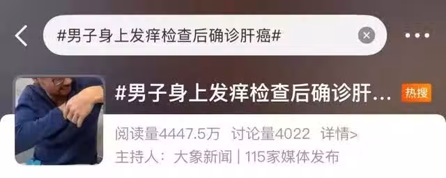近日,熱門話題「男子身上發癢檢查後確診肝癌」登上社群平台熱搜,引髮網友熱議!來自河南的王先生(化名)今年40多歲,最近總覺得身體發癢,以為是春季皮膚乾燥所致,可瘙癢症狀一直持續,便懷疑自己過敏了,於是服用治療過敏藥物,但無濟於事。直到發癢症狀越來越嚴重,甚至難以正常工作,前往鄭州人民醫院就診,經過一系列檢查後,竟然被確診為肝癌!
