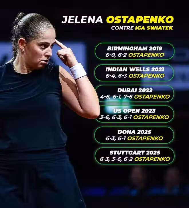 值得注意的是,本場比賽是奧斯塔彭科首次與斯瓦泰克在紅土比賽相遇,奧斯塔彭科獲勝後也實現了全場地(硬地、紅土、草地)對斯瓦泰克橫掃。可以說,拉脫維亞名將已經成為斯瓦泰克的「心魔」了。