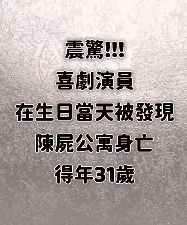震驚!!!喜劇演員,在生日當天被發現陳屍公寓身.亡