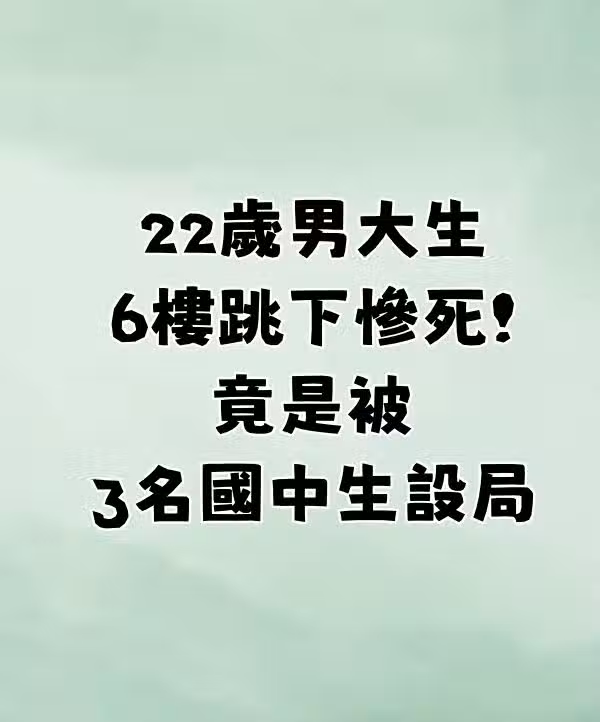 快訊/22歲男大生6樓跳下慘.死!竟是「被3名國中生設局」內幕曝光....