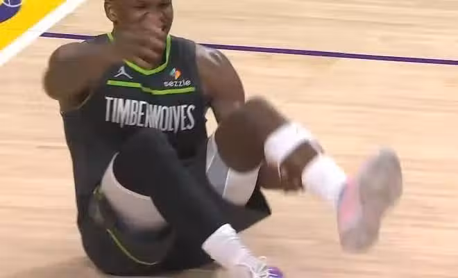 這打著打著,森林狼隊的老大又倒了,先是他上籃被犯規不吹,回過頭來給湖人里夫斯兩罰,接下來又吹了森林狼走步,再給狼隊的教練芬奇一個T,不得不說這一系列的吹罰對森林狼確實是太不利了。