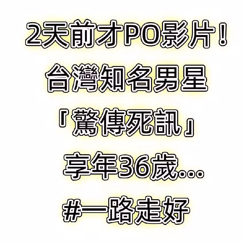 2天前才PO影片!台灣知名男星「驚傳死訊」享年36歲...#康熙來了爆紅