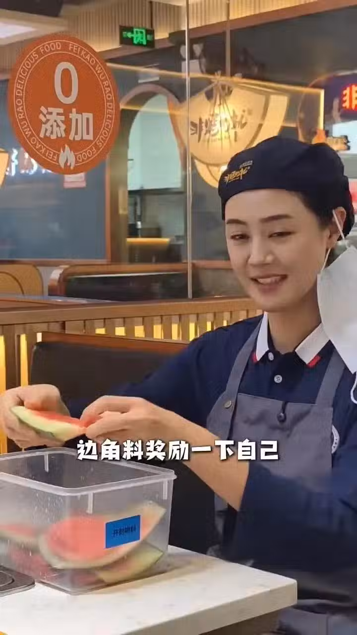 於淼把30個西瓜切好後,便在一旁坐下來休息一會兒。只見她拿起切下來的邊角料品嘗,連一點點果肉都不放過。本應當廚餘垃圾丟棄的西瓜就這樣進入了於淼的肚子裡,不少網友看到後更大讚於淼珍惜糧食不浪費,紛紛對她的行為點贊。