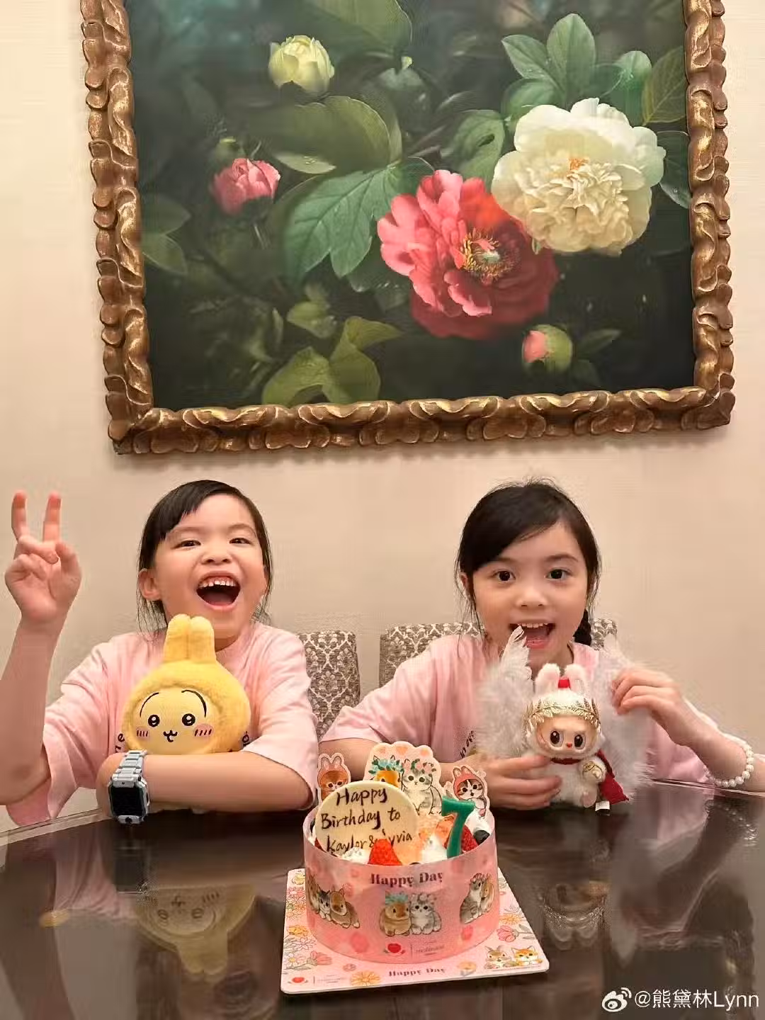 熊黛林為女兒們準備了可愛的生日蛋糕,還根據女兒各自的喜歡準備的不一樣的小玩偶作為生日禮物,真的好用心。