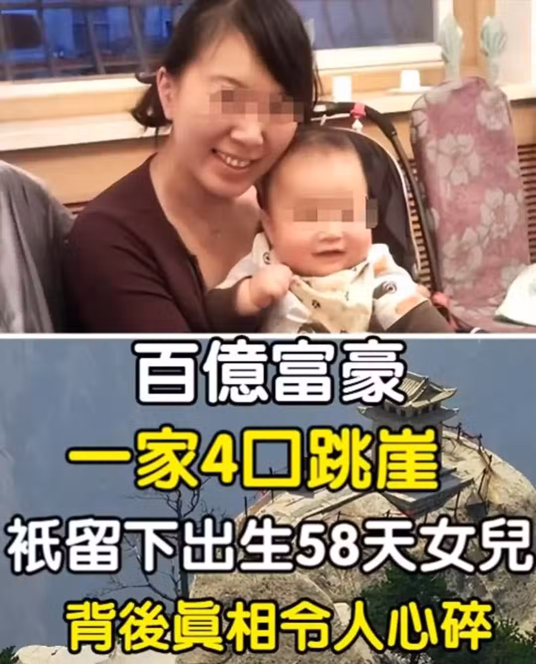 百億富豪一家4口跳崖!只留下出生58天女兒,背後真相令人心碎