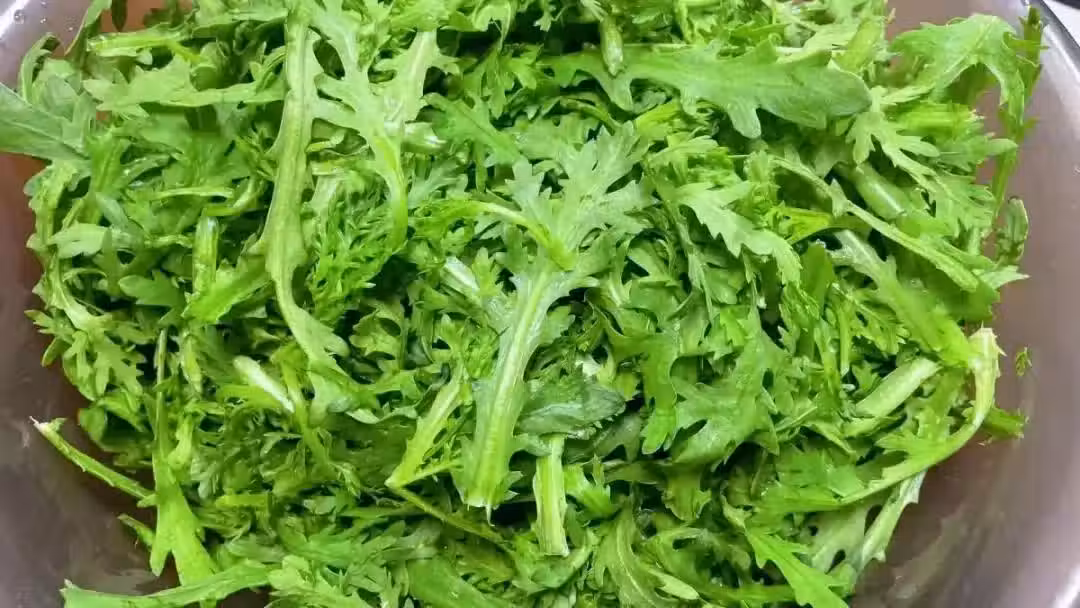 1、茼蒿洗凈,切成長段;大蒜剁成蒜末(越細越香);干辣椒剪成小段(去籽減辣,怕辣可不放)。