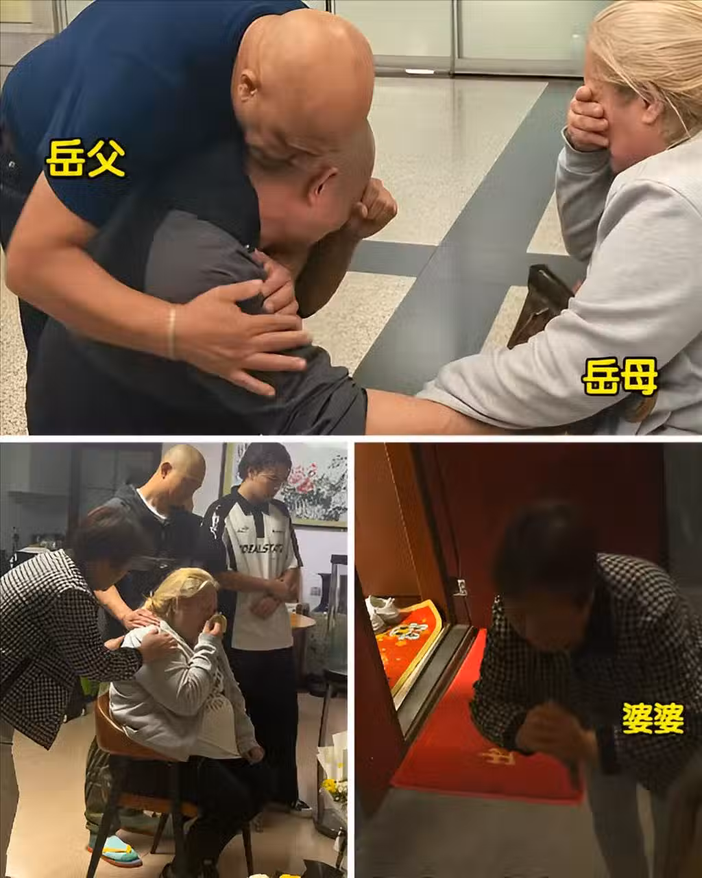 淚目!網紅「洋媳婦」父母來華奔喪,老公下跪迎接,婆婆鞠躬說對不起