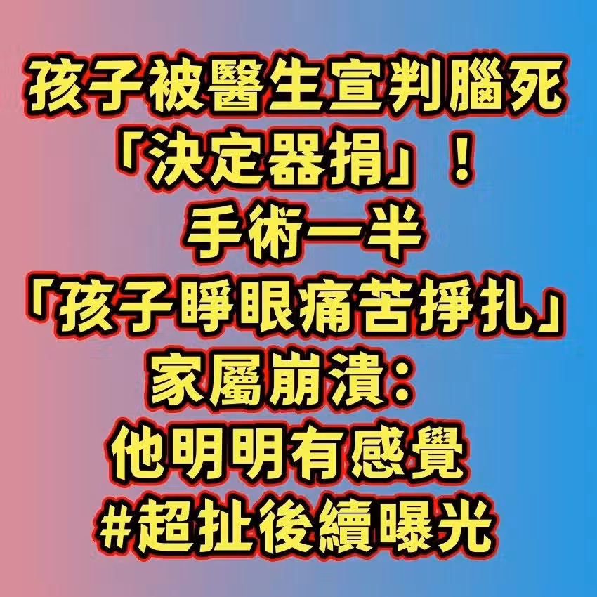 孩子被醫生宣判腦死「決定器捐」! 手術一半「孩子睜眼痛苦掙扎」家屬崩潰:他明明有感覺 #超扯後續曝光