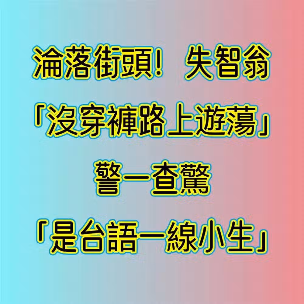 淪落街頭!失智翁「沒穿褲路上遊蕩」..警一查驚「是台語一線小生」