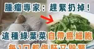 腫瘤專家再三警告!這種綠葉菜自帶癌細胞,很多人卻天天都在吃!不想老了被癌症纏上,現在戒掉還來得及!