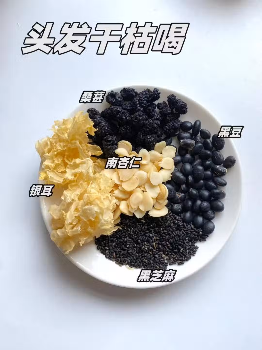 ☑️食材:黑豆+黑芝麻+桑葚+銀耳+南杏仁
