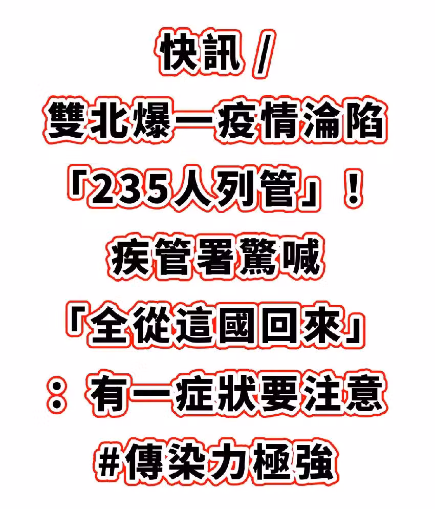 快訊/雙北爆一疫情淪陷「235人列管」! 疾管署驚喊「全從這國回來」:有一症狀要注意 #傳染力極強