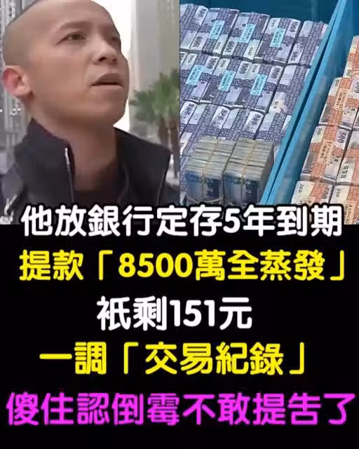 放銀行定存5年!他到期提款「8500萬全蒸發」只剩151元 一調「交易紀錄」傻住:不敢提告了