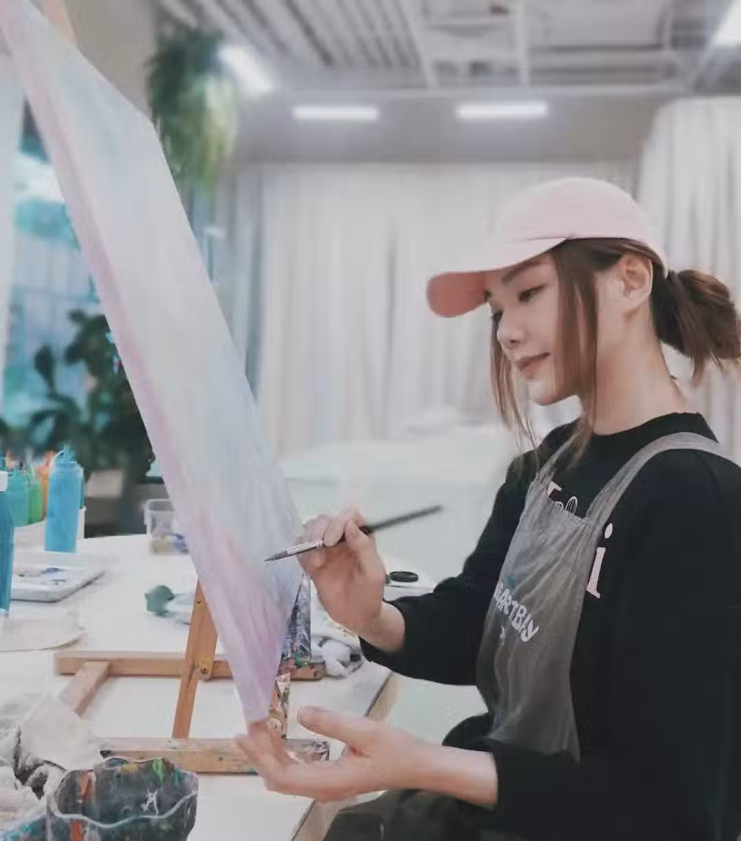 湯洛雯當天打扮的很休閒,深色上衣搭配休閒褲,頭上的粉色棒球帽十分吸睛,這次她明顯有化妝,皮膚水嫩又白皙,看起來狀態超好,畫畫時的她很專注,雖然其畫作用網民的話說看起來有些抽象,但是仍吸引了不少人為之點贊。