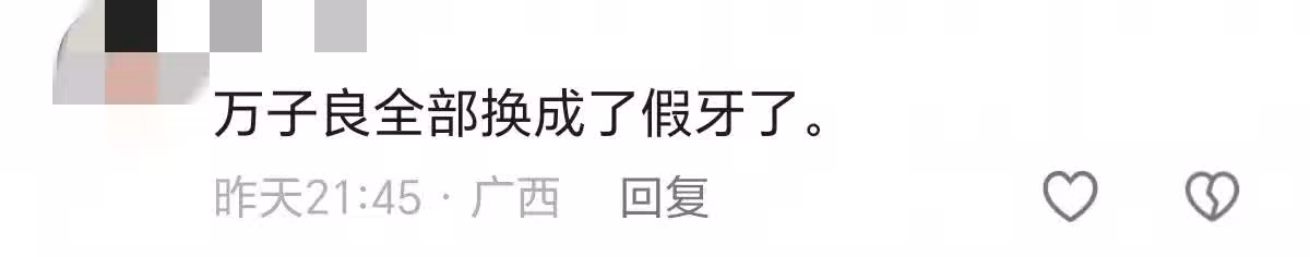 網友還發現,萬梓良的牙好像是假牙,他把牙齒全部換了,看來年齡大了,他牙齒也不行了,真是老了。